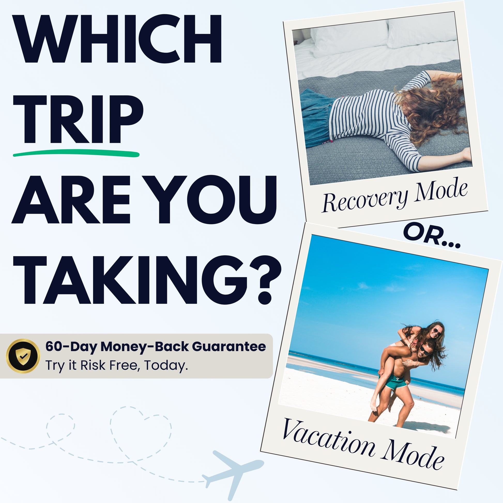 By addressing all three major sleep disruptors at once, you arrive feeling clear, focused, and ready to enjoy your trip from the very first day. No “recovery tax.” No wasted days. Just you, landing refreshed.